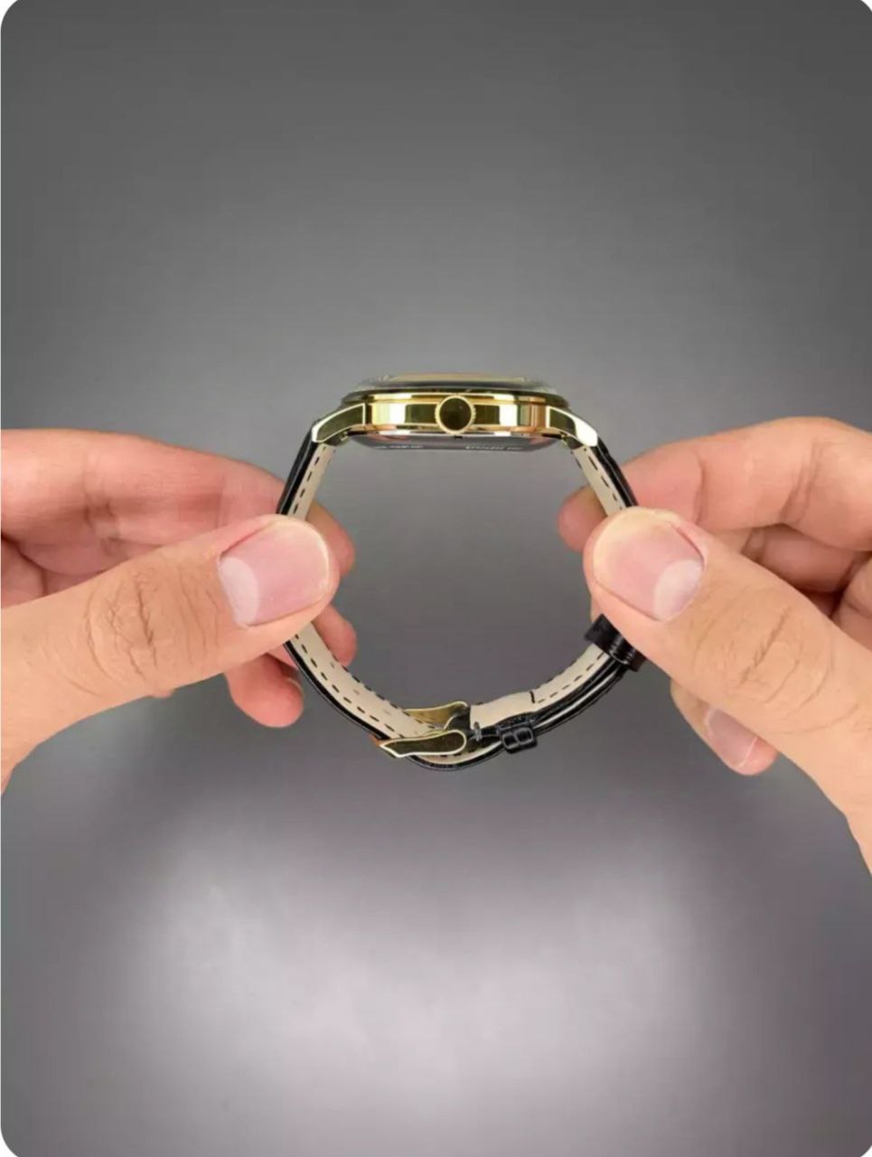 🔺بند و بدنه : بند چرم فوق العاده شیک و رنگ 100% ثابت و ضد حساسیت ( توضیحات آلیاژ ضد حساسیت در انتهای متن )