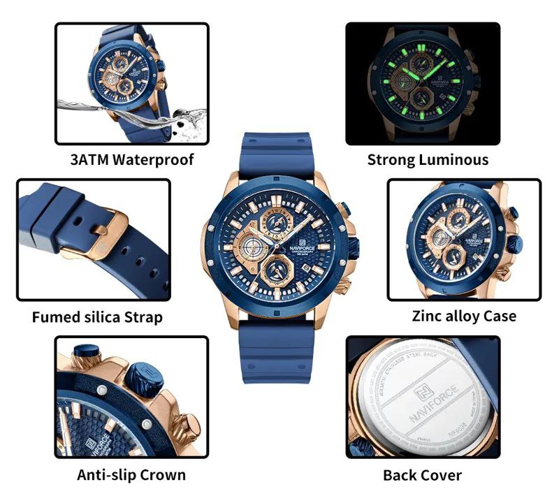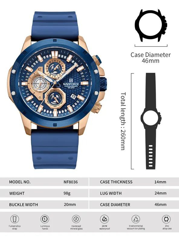 ساعت مارک نیوی فورس مدل 8036 سه موتوره فعال رنگ ثابت تقویم دار